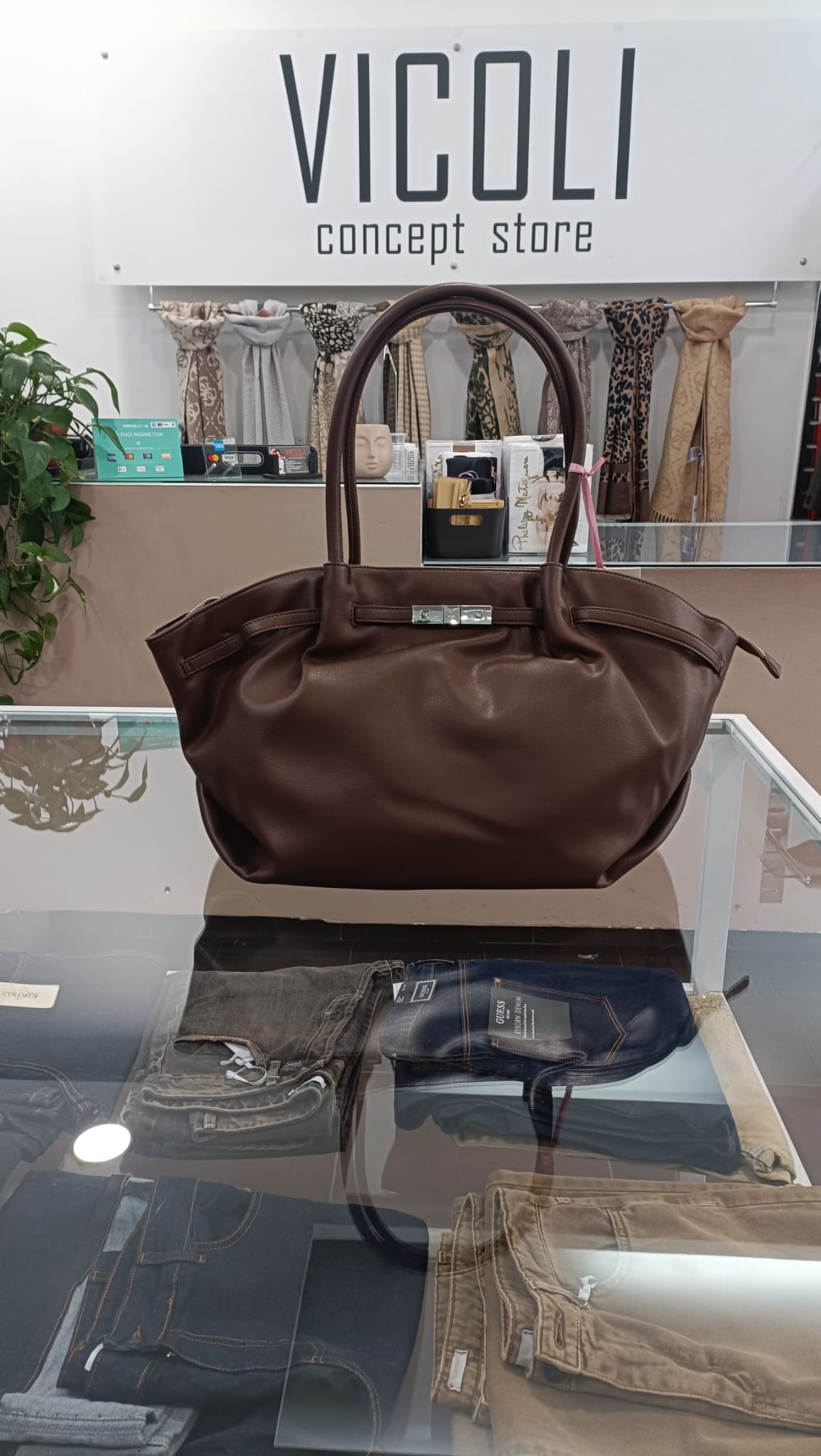 La New Brielle Big è una borsa elegante e versatile, realizzata in PU martellato con un logo distintivo. Dotata di una pratica chiusura con cerniera, presenta un interno foderato con un unico scomparto e due tasche interne, di cui una con zip. La tracolla è regolabile e removibile, per adattarsi a ogni esigenza. Perfetta per ogni occasione, unisce funzionalità e stile.